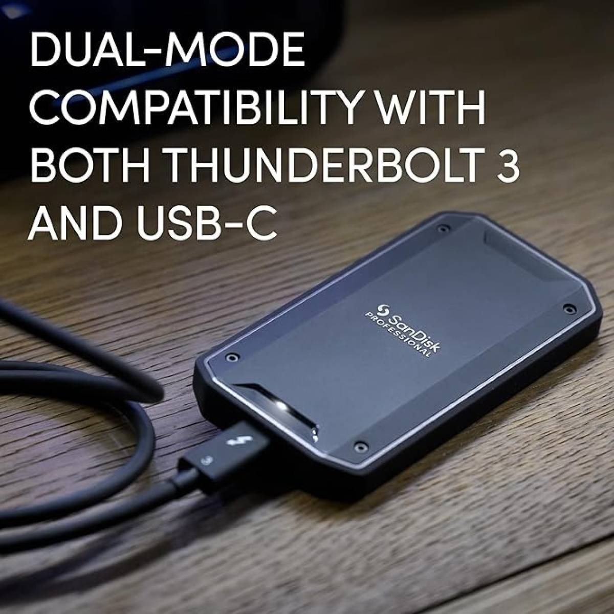 ou em até 6x de R$ 499,83 no cartãoSanDisk Professional SSD PRO-G40 de 2 TB - até 3000 MB/s, Thunderbolt 3 (40 Gbps), USB-C (10 Gbps), resistência IP68 à poeira/água, unidade de estado sólido externa - SDPS31H-002T-GBC1D [versão exFAT]