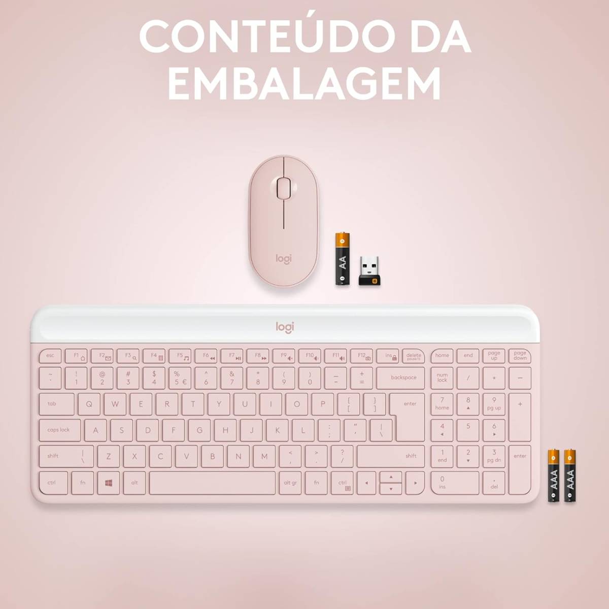 ou em até 6x de R$ 71,50 no cartãoTeclado e Mouse sem fio Logitech MK470 com Design Slim, Digitação e Clique Silencioso, Mouse Ambidestro, Conexão USB e Pilhas Inclusas - Rosa
