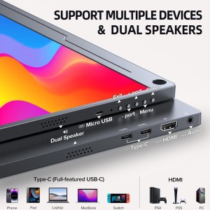 ou em até 6x de R$ 164,83 no cartãoMonitor portátil OLED UPERFECT de 16" - 3K 2880x1800, 120 Hz, 0,1 ms, 500 nits, 100% DCI-P3, contraste de 100000:1, design ultrafino para laptops, mini PCs, celulares e consoles de jogos
