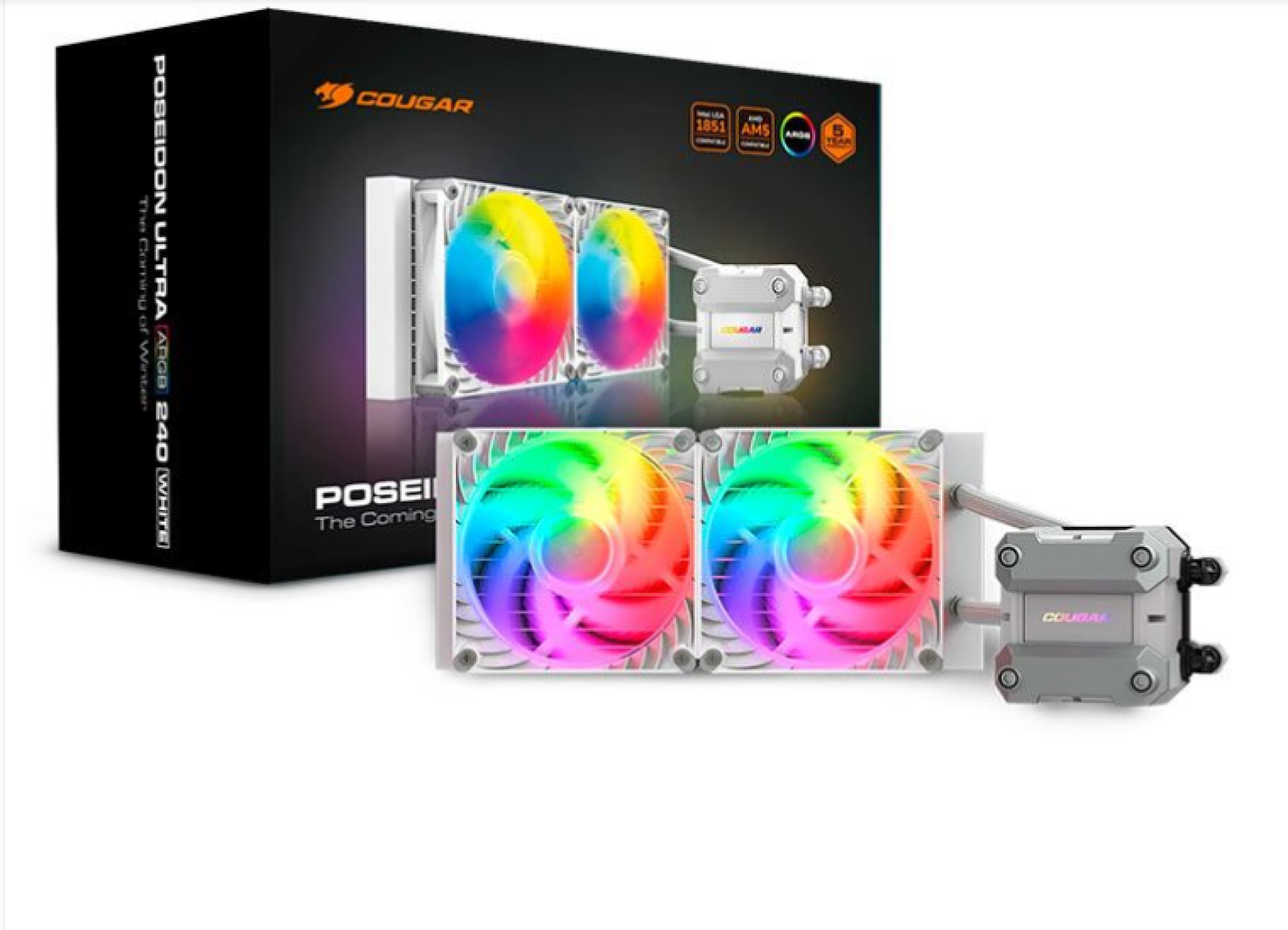 ou em até 6x de R$ 138,33 no cartãoWater Cooler Cougar Poseidon Ultra 240, ARGB, 240mm, Branco