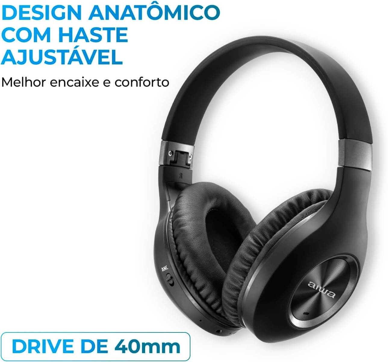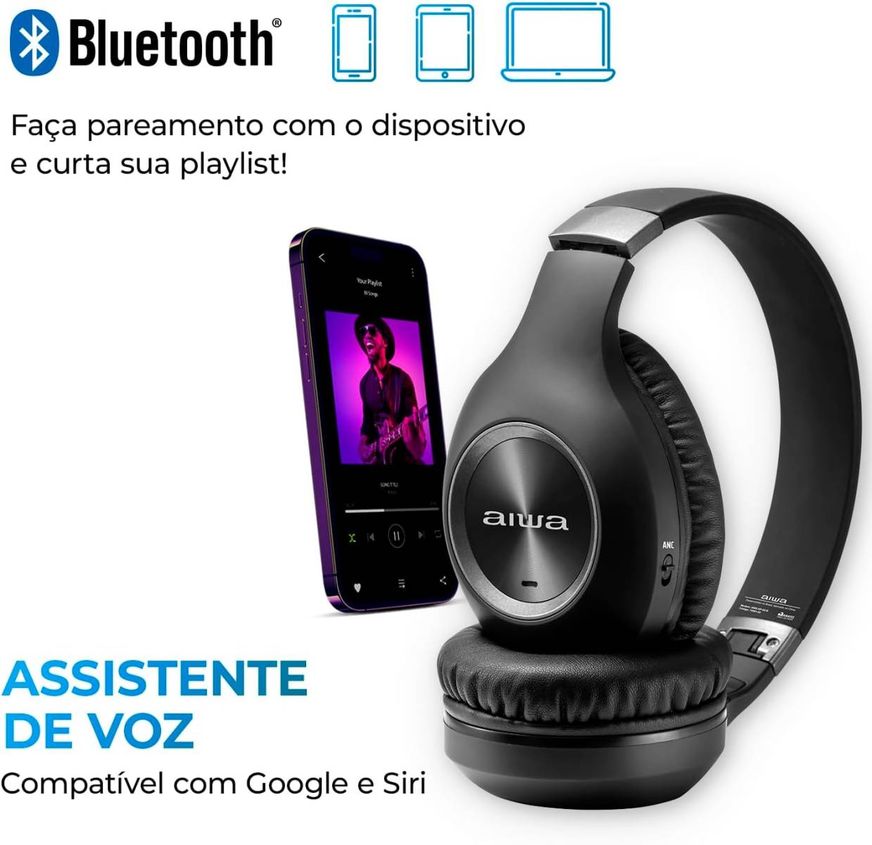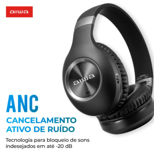 ou em até 6x de R$ 75,00 no cartãoAIWA AWS-HP-02-B — Fone de Ouvido Bluetooth com Cancelamento de Ruído (ANC)