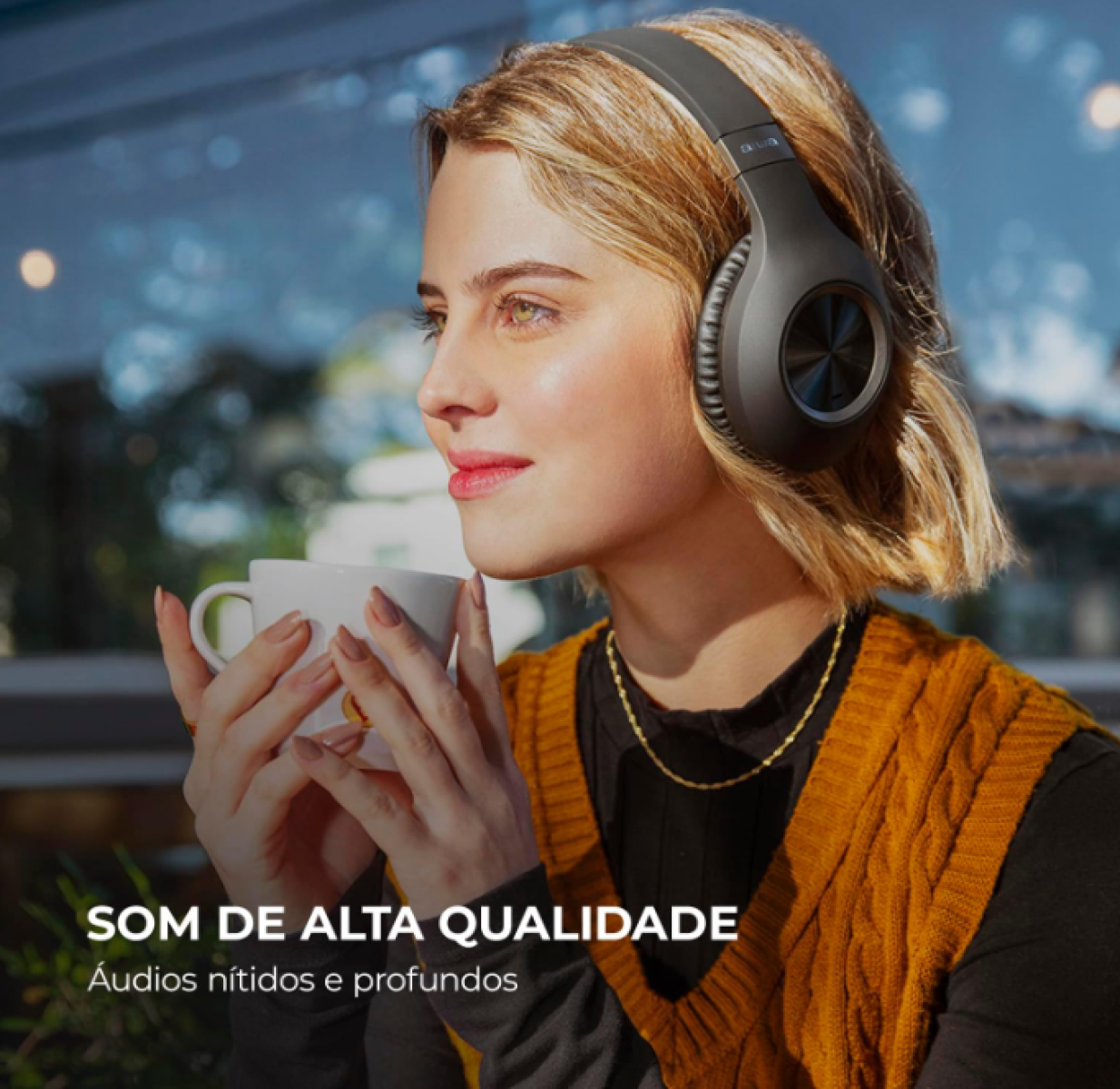 ativo de ruído (ANC), ele reduz sons externos, garantindo foco total na música, estudos ou trabalho.