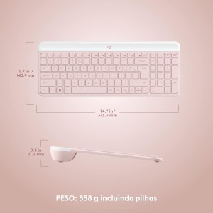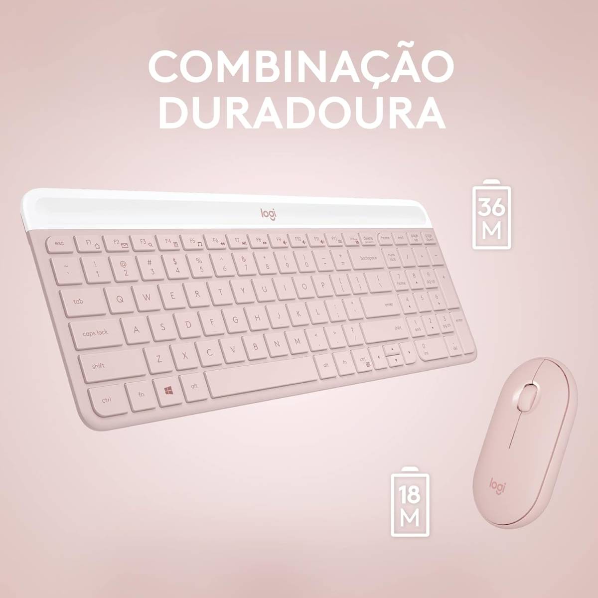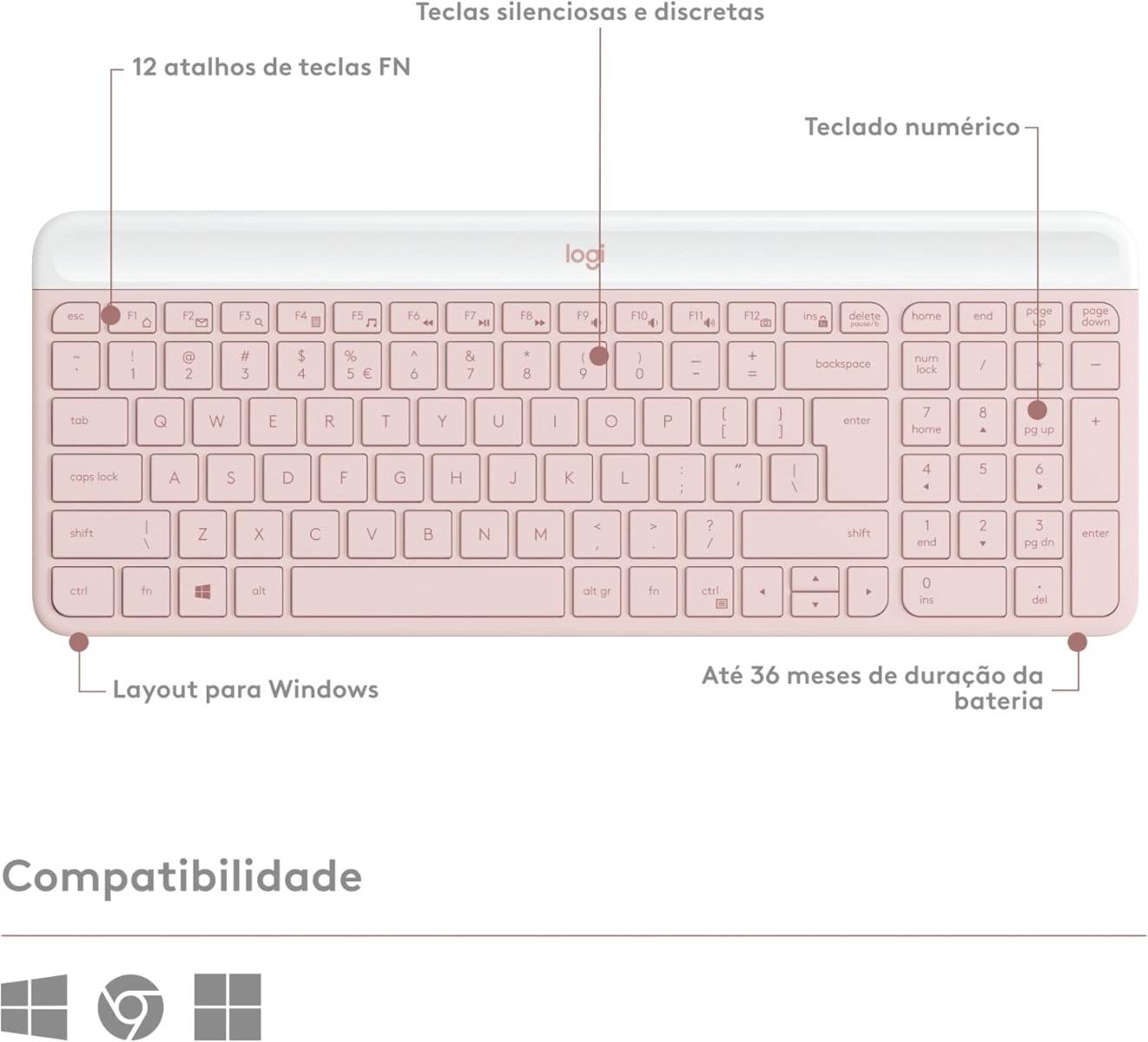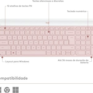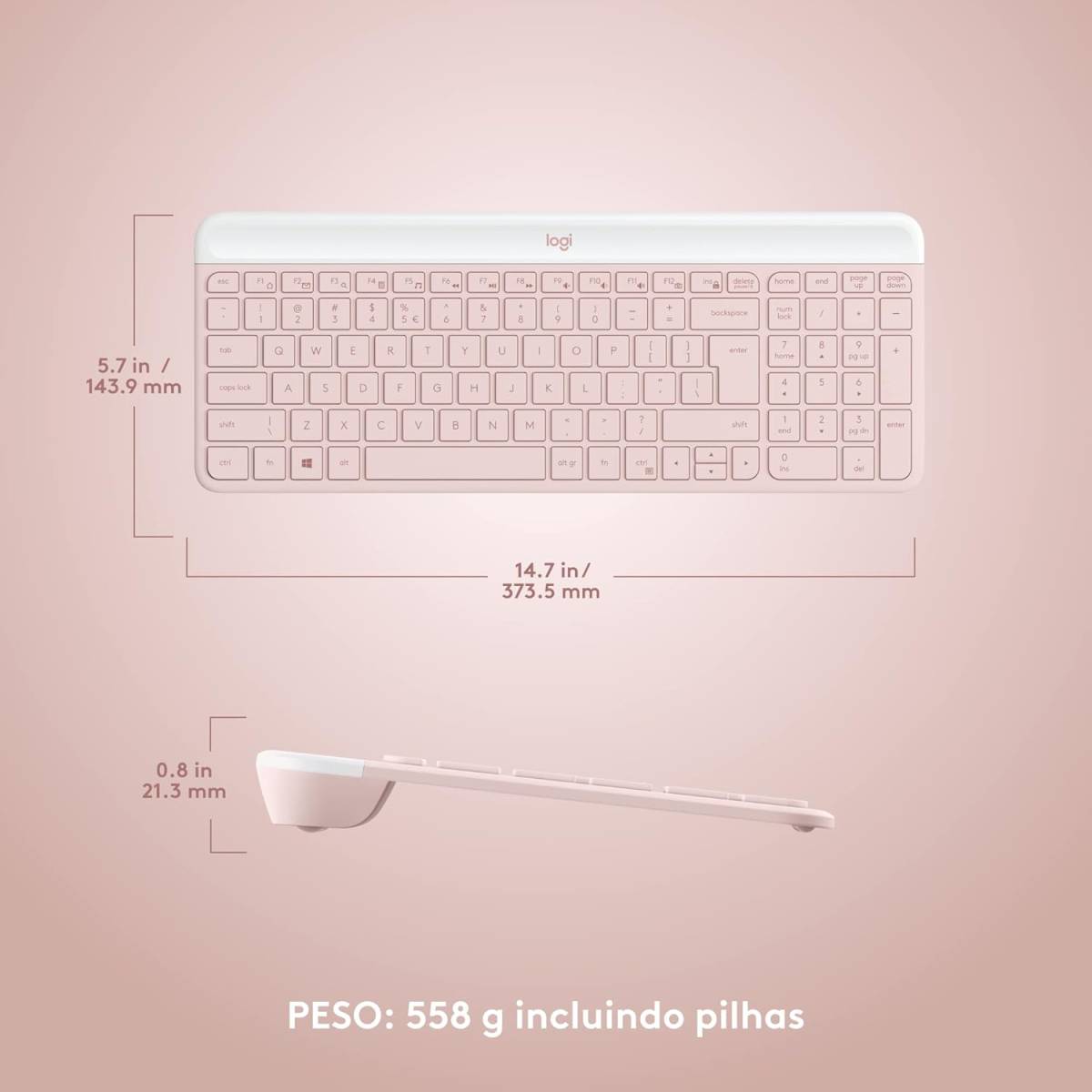 ou em até 6x de R$ 71,50 no cartãoTeclado e Mouse sem fio Logitech MK470 com Design Slim, Digitação e Clique Silencioso, Mouse Ambidestro, Conexão USB e Pilhas Inclusas - Rosa