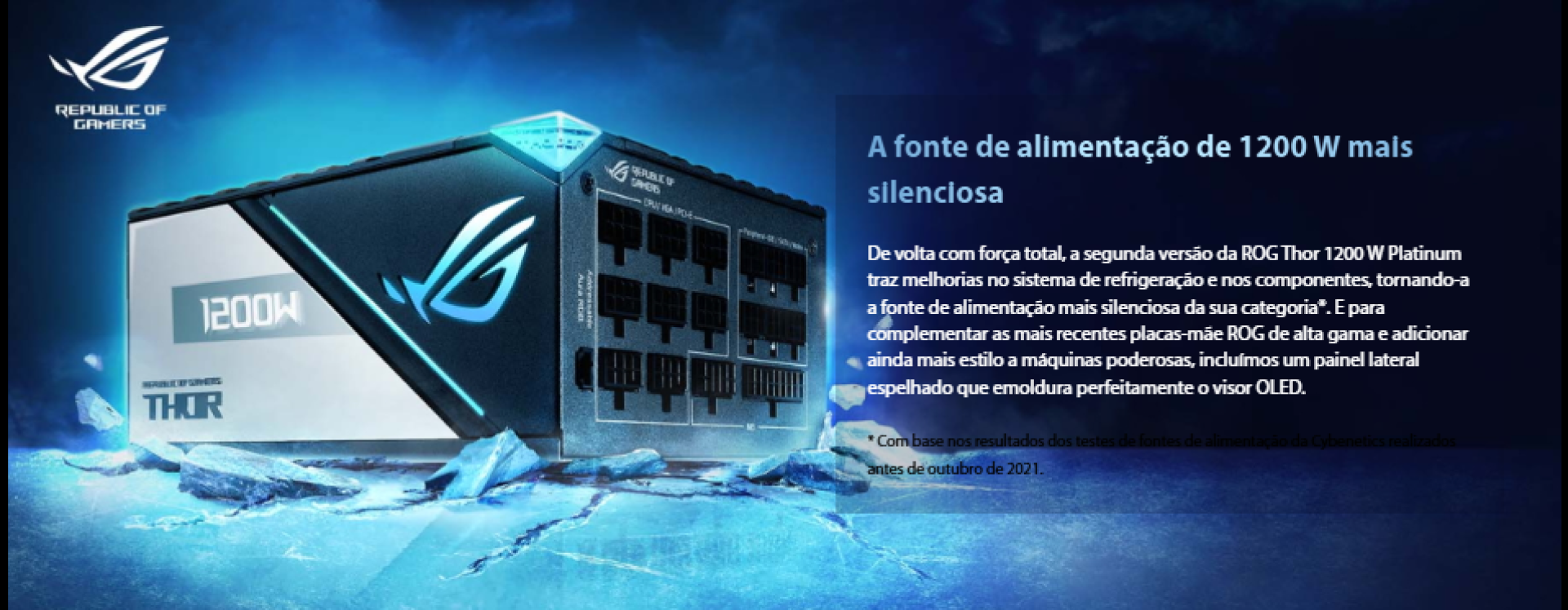 A ROG Thor 1200 W Platinum II é a fonte de alimentação mais silenciosa da sua categoria.
