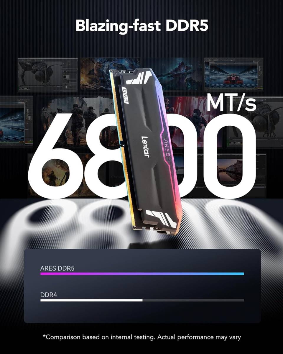 Impulsione seu sistema com a Lexar ARES DDR5 de 32 GB UDIMM, projetada para quem busca velocidade e desempenho de alto nível em jogos e aplicações exigentes. Com 6800 MHz e eficiência de 1,4V, oferece operações rápidas, multitarefas fluidas e estabilidade confiável. Compatível com Intel XMP 3.0 e AMD EXPO, facilita a configuração e otimiza o desempenho. Seu elegante design preto com iluminação RGB adiciona estilo e modernidade, transformando seu PC em uma máquina potente.
