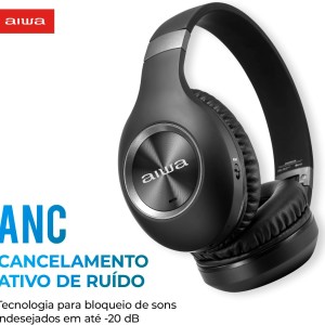 ou em até 6x de R$ 75,00 no cartãoAIWA AWS-HP-02-B — Fone de Ouvido Bluetooth com Cancelamento de Ruído (ANC)