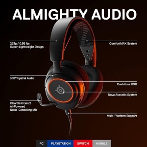 SteelSeries Arctis Nova 3 Multi-Plaform Gaming Headset - Signature Arctis Sound - ClearCast Gen 2 Mic - PC, PlayStation 5|4, Xbox Series X|S, Switch, Mobile |