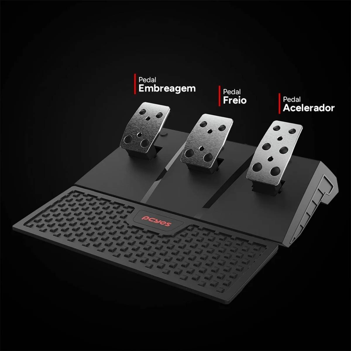 - Pedais: Conjunto com 3 pedais (acelerador, freio e embreagem).