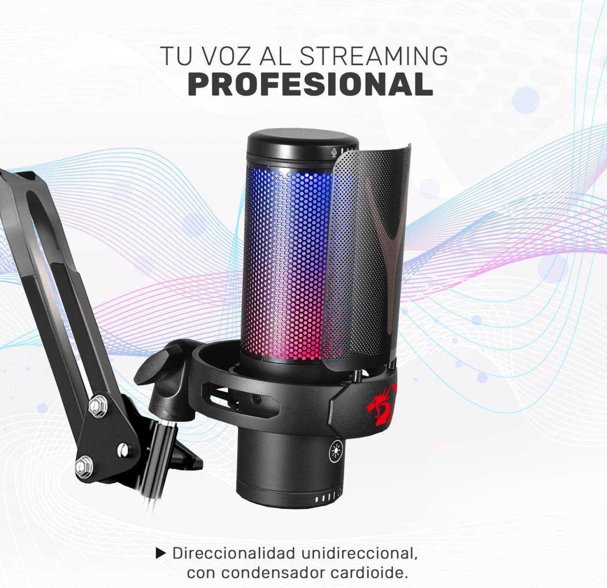 O Microfone Gamer Redragon Fenris RGB Preto GM301 entrega desempenho profissional com visual imponente. Equipado com iluminação RGB dinâmica, base antideslizante e redução de ruído, é ideal para streamers, criadores de conteúdo e gamers exigentes. Capta o som com clareza cristalina, garantindo voz limpa e natural em transmissões, chamadas ou gravações.