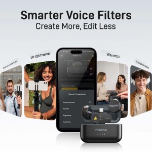 O design leve e discreto torna o Maono T5 ideal para quem precisa de um microfone de lapela de alto desempenho e visual profissional. A bateria de longa duração permite até 6 horas de uso contínuo, e o estojo de carregamento portátil garante praticidade no dia a dia.