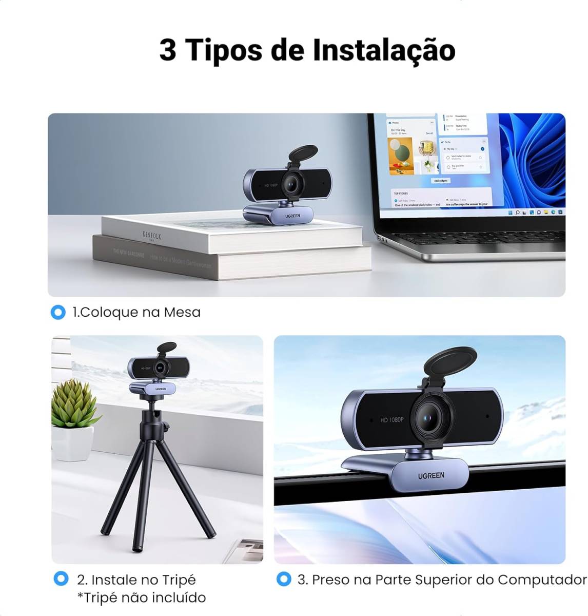 A Webcam UGREEN CM678 entrega imagem Full HD nítida, foco automático e microfone embutido de alta sensibilidade, garantindo que suas reuniões, aulas online e transmissões ao vivo tenham qualidade profissional.
